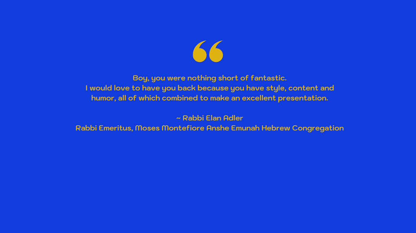 Your presentation was definitely one of the highlights of the entire Yom Tov... an experience that I will not soon forget!
